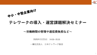 中小・中堅企業向け、テレワークの導入・運営課題 解決セミナー ~労働時間の管理や通信費負担など~