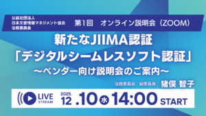 ◆新たなJIIMA認証「デジタルシームレスソフト認証」スタート◆~デジタルドキュメント2025委員会講演・ベンダー説明会のご案内~