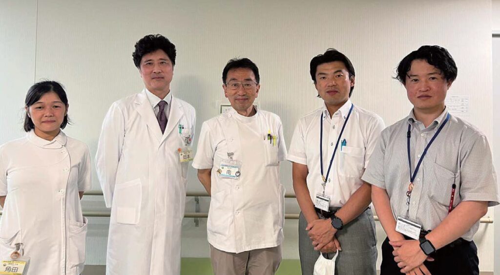 電子処方箋に関係する病院スタッフ。左から角田延子氏(薬剤部担当者)、岡本禎晃氏(薬剤部長)、南正人氏(芦屋病院病院長)、