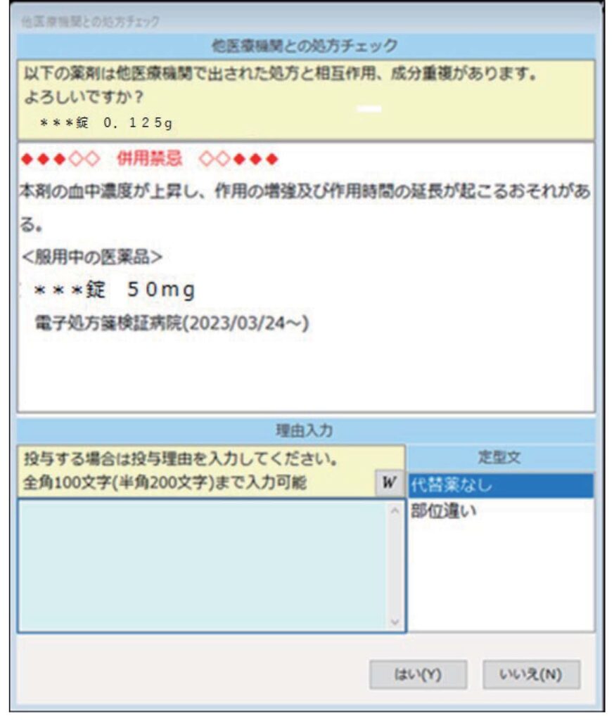 患者によっては処方されている薬の種類によって、併用禁忌のアラートが表示される。