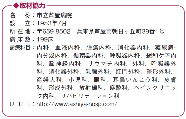 最後に、多大なご協力をいただきました、市立芦屋病院医事課の細山様、加藤様に感謝申し上げます。