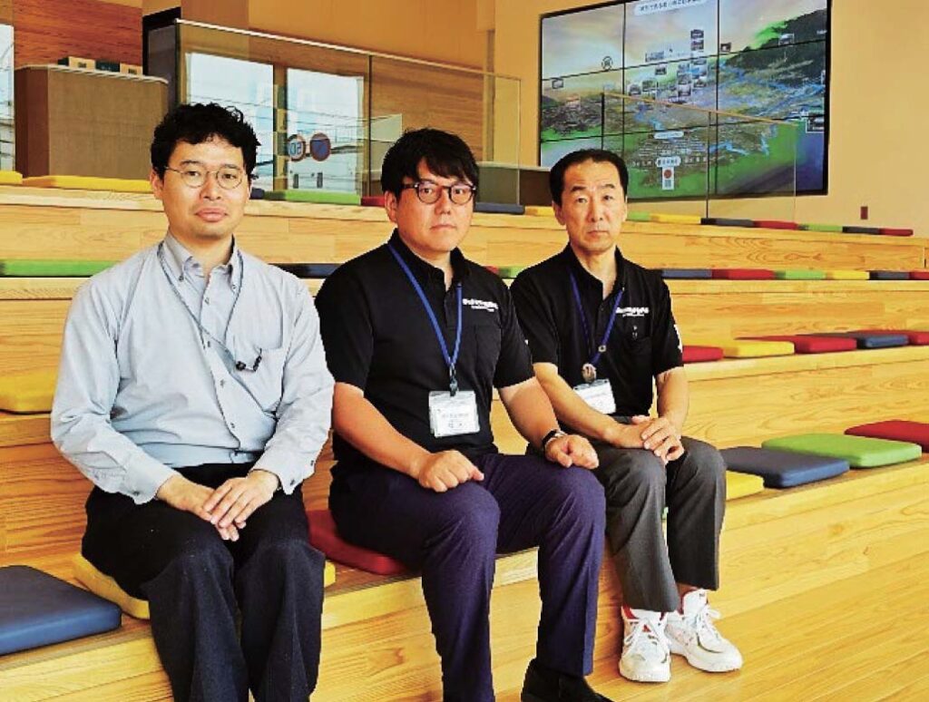 右から文化スポーツ観光部歴史情報博物館の嶋根裕一館長、橋本浩光係長、渡邉裕太主査