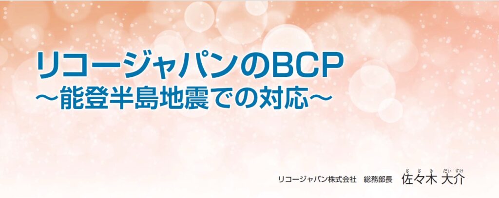 この記事ではリコージャパン株式会社におけるBCP対応の概要説明、ならびに能登半島地震における対応の現況をお伝えいたします。